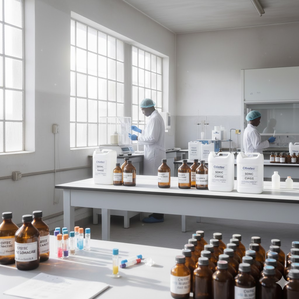 Chimtec laboratory reagents are designed to ensure accuracy and reliability in chemical, biological, and pharmaceutical analyses. The range includes acids, bases, salts, solvents, indicators, buffers, and titration agents.