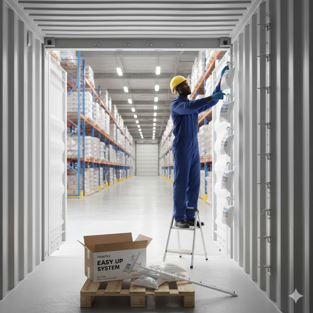 Le système Easy Up facilite la fixation et la suspension des sachets ou barres déshydratantes à l’intérieur des conteneurs.
